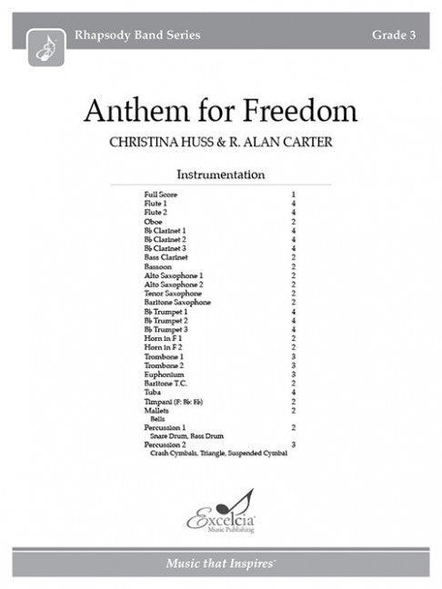 樂器: wind band出版社: Excelcia Music Publishing原文簡介: 克莉絲蒂娜-胡斯(Christina Huss)和 R. 艾倫-卡特(R. Alan Carter)合作的這首作品也是本著同樣的團結精神創作的。自由之歌》是愛國音樂會的完美之選,是對所有合奏聲部的...