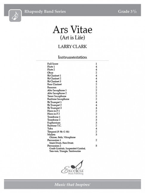 樂器: wind band出版社: Excelcia Music Publishing原文簡介: 藝術即生活!拉裡-克拉克(Larry Clark)為音樂會樂隊創作的這一美妙新作充分體現了這一理念。Ars Vitae》充滿了華麗和厚重的銅管樂風格,讓人回想起阿爾弗雷德-裡德(Alfred Re...