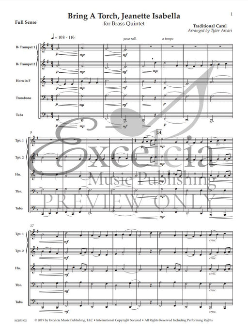 作曲家: 改編者: Arcari Tyler校訂者: Author: 樂器: wind quintet出版社: Excelcia Music Publishing原文簡介: 這是一首 17 世紀的頌歌 帶著火把,珍妮特-伊莎貝拉。這首木管五重奏將為您的聖誕曲目錦上添花,尤其是如果您正在...