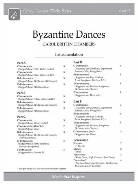 樂器: 5 melody instruments and percussion出版社: Excelcia Music Publishing原文簡介: 卡羅爾-布裡廷室內樂團令人讚歎的《拜占庭舞曲》是為靈活的合奏而編排的。只需 5 名管樂/弦樂手和打擊樂手即可演奏,這首平易近人的音樂會進行曲非常...
