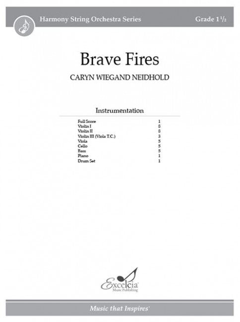 樂器: string orchestra and percussion出版社: Excelcia Music Publishing原文簡介: 勇敢撲火》是一部以架子鼓為主題的新作品,主題嚴肅而有趣。作曲家卡琳-維甘德-內德霍爾德寫道:《勇敢的火焰》是為了紀念受內華達州北部和加利福尼亞州北部毀滅...
