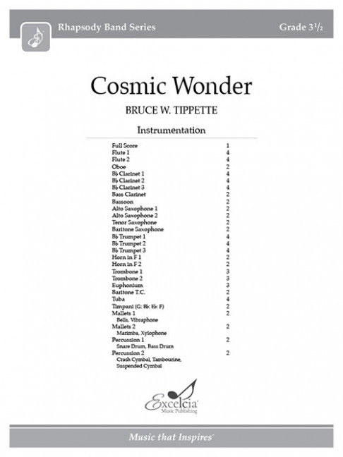 樂器: wind band出版社: Excelcia Music Publishing原文簡介: 在這首音樂會樂隊作品中,高亢的旋律、搖擺的音調和舒緩的節奏,讓每一個音符都回蕩著宇宙的聲音。獨奏機會很多,非常適合獨立演奏。曲目: 頁數: 重量(g): 1EAN:812598033953