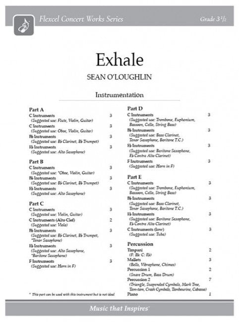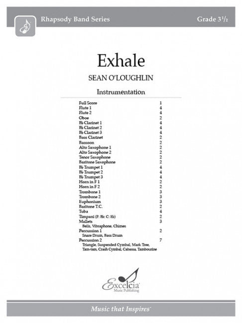 樂器: 5 melody instruments and percussion出版社: Excelcia Music Publishing原文簡介: 現在設置為靈活的儀器! _呼氣 呼氣》是音樂會樂隊的美妙新音景,使用動態和分層管弦樂創造出呼吸般的音效。作曲家肖恩-奧洛夫林 (Sean O'...