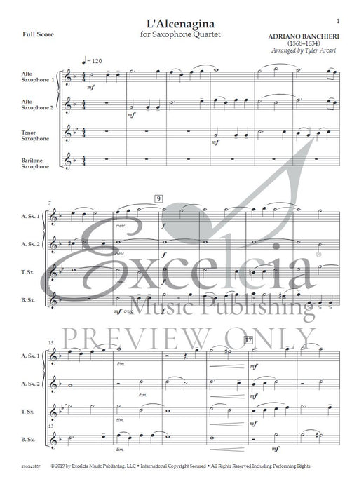 作曲家: 改編者: Arcari Tyler校訂者: Author: 樂器: 4 saxophones (AATBar)出版社: Excelcia Music Publishing原文簡介: 這首由阿德里亞諾-班奇耶裡(Adriano Banchieri)創作的坎佐納為薩克斯管四重奏而...