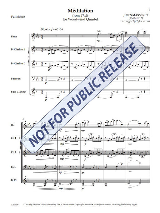 作曲家: 改編者: Arcari Tyler校訂者: Author: 樂器: 5 woodwinds出版社: Excelcia Music Publishing原文簡介: 作曲家泰勒-阿卡裡(Tyler Arcari)將馬塞納的《泰伊絲》中的經典小提琴獨奏改編成木管五重奏,譜寫了這首《...