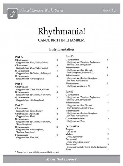 樂器: wind band出版社: Excelcia Music Publishing原文簡介: Rhythmania! 是為發展中的樂隊創作的一部激動人心的新作品!在這首充滿搖滾風格的開場曲中,向學生們介紹用手、棍棒和鉛筆在支架上產生的新音效!我們知道,您的學生會不止一次地要求演奏這首曲子!...