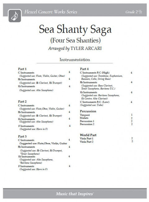 作曲家: 改編者: Arcari Tyler校訂者: Author: 樂器: 4 brass instruments出版社: Excelcia Music Publishing原文簡介: Sea Shanty Saga 是對 2021 年 TikTok 重新興起的 13 世紀 Sea ...