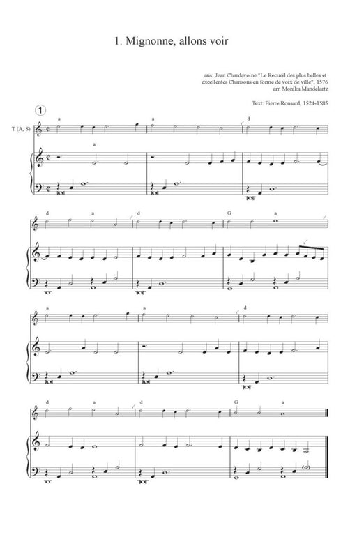 作曲家: 改編者: Mandelartz Monika校訂者: Author: 樂器: harp and recorder出版社: Schell Musikverlag原文簡介: 這一卷 Mignonne...allons voir 收集了 16 世紀法國流行音樂的新編曲。這些改編曲是...