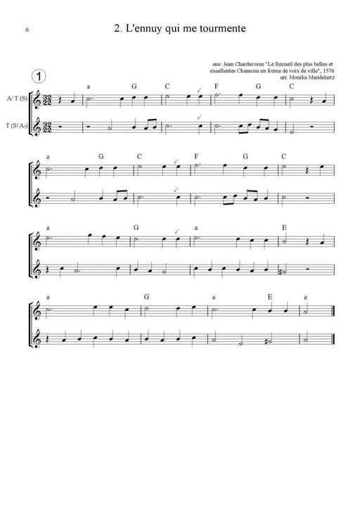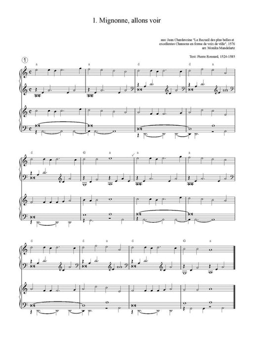作曲家: 改編者: Mandelartz Monika校訂者: Author: 樂器: 2 recorders出版社: Schell Musikverlag原文簡介: 這一卷 Mignonne...allons voir 收集了 16 世紀法國流行音樂的新編曲。編曲為木笛(高音、中音、...