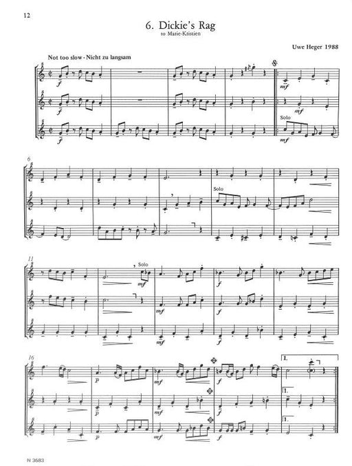 校訂者: Heger Uwe Author: 樂器: 3 recorders (SSA)出版社: Heinrichshofen's Verlag原文簡介: 這些 簡易拉格泰姆三重奏 通過激勵性的合奏,豐富了人們的日常音樂生活。易於演奏的調性非常適合演奏經驗不足的演奏者。每位演奏者都有機會演...