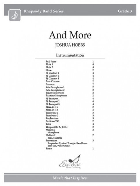 樂器: wind band出版社: Excelcia Music Publishing原文簡介: 還有更多 是一部能激發音樂家創作靈感的作品。作曲家約書亞-霍布斯(Joshua Hobbs)的新作文筆優美,充滿表現力,非常適合任何節目。曲目: 頁數: 重量(g): 1EAN: UPC: 812...