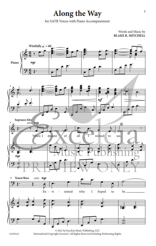 樂器: choir (SATB) and piano出版社: Excelcia Music Publishing原文簡介: 一路走來》傳達了一個我們現在都需要聽到的資訊。這首歌提醒我們在人生旅途中友誼和鼓勵的重要性。強勁的抒情歌曲與沉思的無伴奏合唱形成鮮明對比。多變的複合節拍和偶爾的休止符的使...