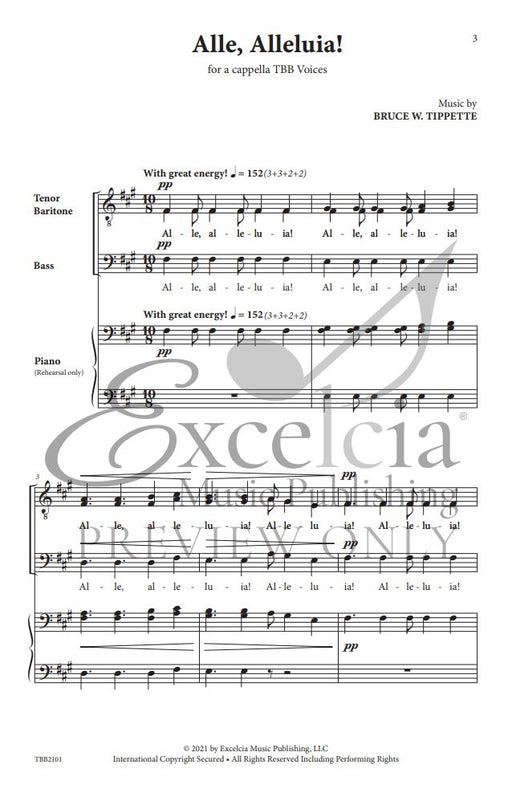 樂器: men's choir (TBB) a cappella出版社: Excelcia Music Publishing原文簡介: Alle, Alleluia》是一首有趣而令人興奮的作品,適合在音樂會或節日期間使用,是向前進中的合唱團介紹混合音高的絕佳作品。聲部音域易於掌握,因此這首精心...