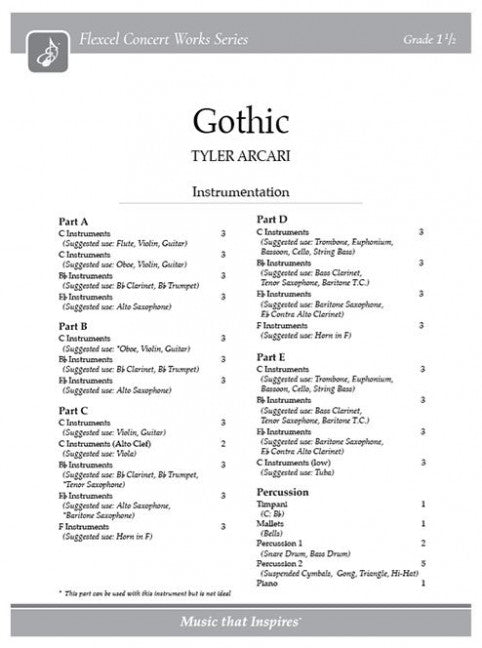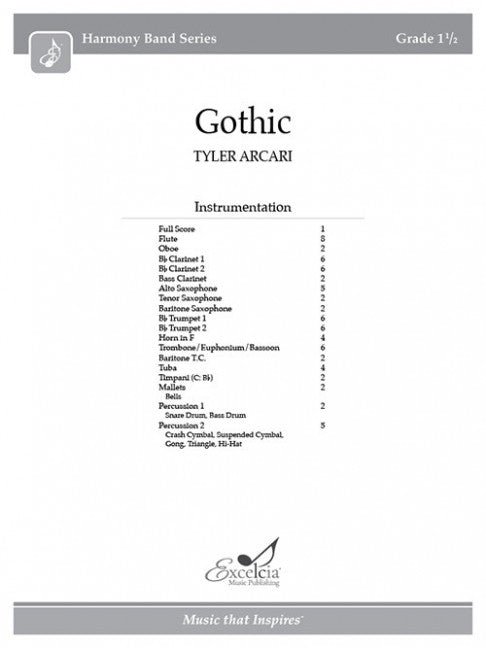 樂器: 5 melody instruments and percussion出版社: Excelcia Music Publishing原文簡介: 現在設置為靈活儀錶! 音樂 受 12 世紀哥特式藝術家的啟發,這部令人興奮的新音樂會樂隊作品探索了許多音樂理念。從獨立演奏到協奏旋律線條,《哥特...