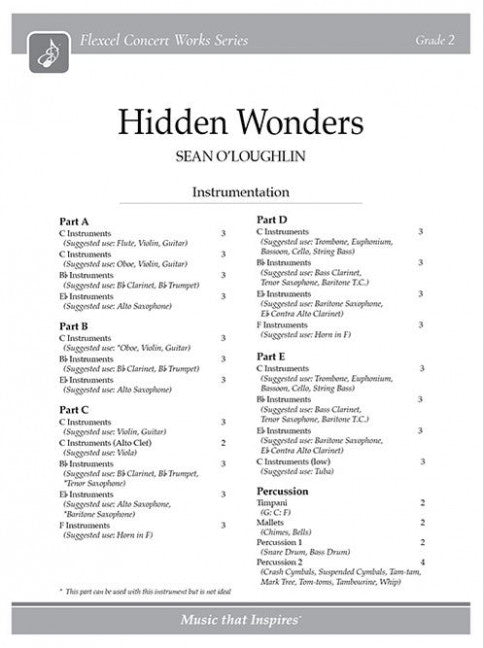 樂器: wind band出版社: Excelcia Music Publishing原文簡介: 隱藏的奇跡》(Hidden Wonders)是肖恩-奧勞林(Sean O'Loughlin)為年輕音樂家創作的傑出範例。這首曲子充滿了抒情之美和精湛的技藝,是對音樂家的挑戰。Hidden Wond...