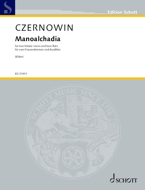Manoalchadia for two female voices and bass flute Text after two hebrew poems by Enadad Eldan Edition Schott
