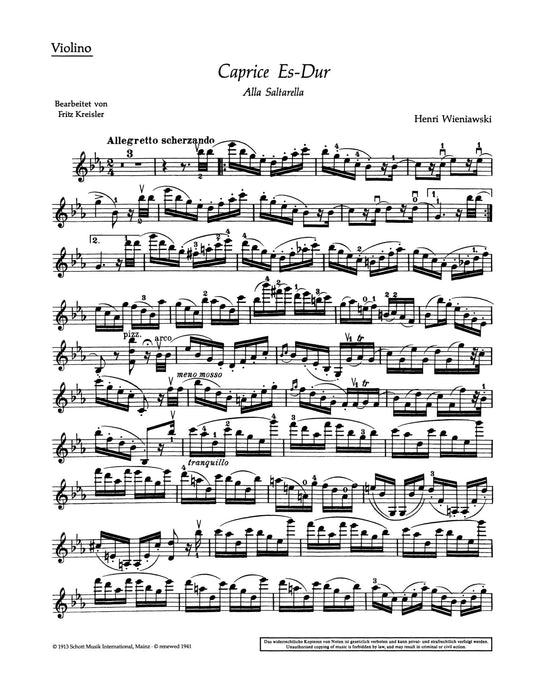 Caprice E flat Major Alla Saltarella 維尼奧夫斯基亨利克 隨想曲 大調 小提琴加鋼琴 朔特版