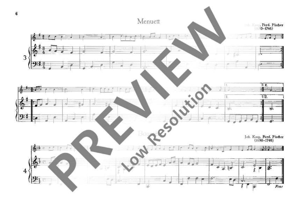 J. Fischer: Zwo Däntz - J. Fischer: Ballett - J.K.F. Fischer: Menuett - J.K.F. Fischer: Bourrée - J. Krieger: Sarabande - J. Pachelbel: Gavotte - J. Pachelbel: Bourrée - Unbekannter Meister: Gigue - J. Kuhnau: Sarabande - J. Kuhnau: Bourrée - J. Kuhnau: Menuett - J.J. Fux: Passepied Der Schmied - J.G. Böhm: Rigaudon - F.X.A. Murschhauser: Sarabande - Unbekannter Meister: Sarabande - J.H. Buttstedt: Menuett - V. Rathgeber: Tanz - V. Rathgeber: Reigen - V. Rathgeber: Lied - J.S. Bach: Menuetto - J.S. Bach: Gavotte - G.F. Händel: Passepied - G.F. Händel: Menuett - Unbekannter Meister: Marsch - G. Muffat: Rigaudon - Unbekannter Meister: Rondeau - Unbekannter Meister: Menuett