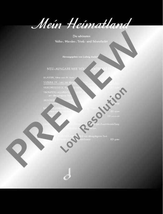 Mein Heimatland Die schönsten Volks-, Wander-, Trink- und Scherzlieder 小提琴獨奏 朔特版
