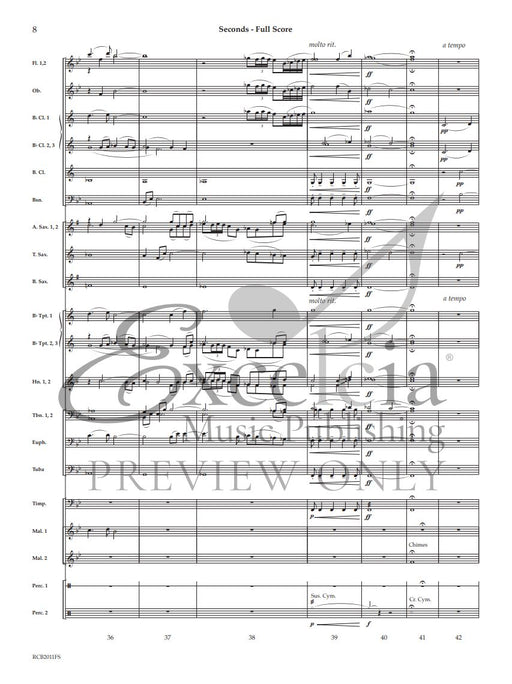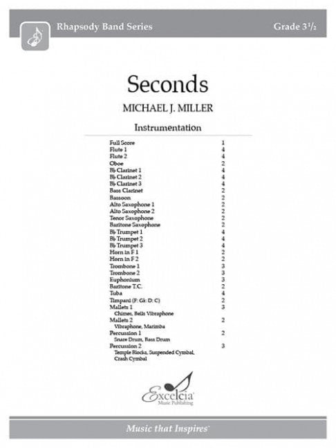 樂器: wind band出版社: Excelcia Music Publishing原文簡介: 這首獻給槍支暴力受害者的作品是新晉作曲家邁克爾-J-米勒(Michael J. Miller)創作的一首沉鬱內斂的作品。秒鐘》極富情感,能充分發揮音樂家的表現力。是您下一個節目中抒情選曲的絕佳選擇...