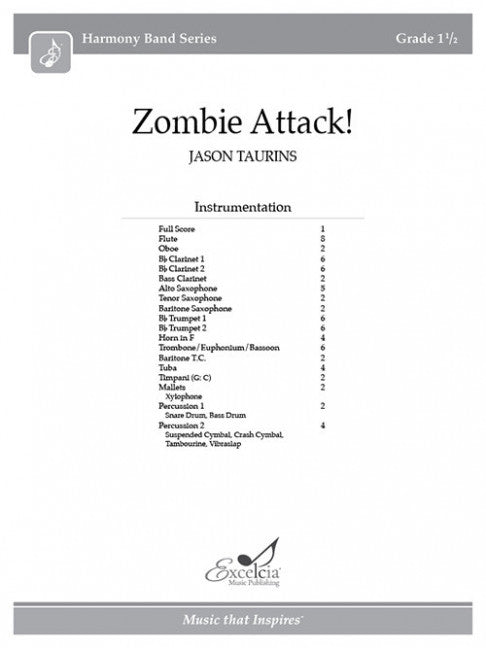 樂器: wind band出版社: Excelcia Music Publishing原文簡介: 這首令人毛骨悚然的新作品是為發展中樂隊準備的,非常適合下一次萬聖節音樂會。Jason 獨特的和聲風格非常適合教授常見的意外音。我們知道,你的學生會一再要求演奏《僵屍來襲》。曲目: 頁數: 12重量...