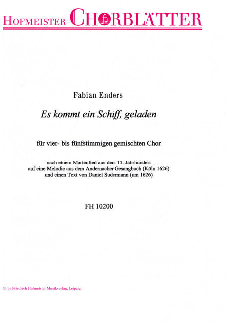 查看完整细节Es kommt ein Schiff, geladen nach einem Marienlied aus dem 15. Jahrhundert auf eine Melodie aus dem Andernacher Gesangbuch (Köln 1626)