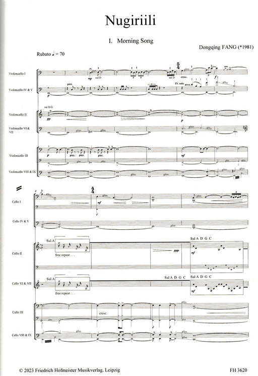 樂器: 9 cellos出版社: Friedrich Hofmeister Musikverlag原文簡介: 努吉裡裡》由中國當代最活躍的作曲家之一方冬青創作於 2008 年。他於 2008 年為大提琴三重奏創作了《努吉裡裡》。應北京中央音樂學院教授納-穆拉(NA Mula)的要求,他為世界上...