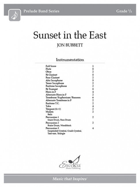 樂器: wind band出版社: Excelcia Music Publishing原文簡介: 火熱而激烈!這首為初學樂隊創作的新作品會讓你的學生要求反復演奏!日落東方》是拉伸打擊樂聲部和加強獨立演奏的絕佳曲目。曲目: 頁數: 重量(g): 1EAN:812598033014
