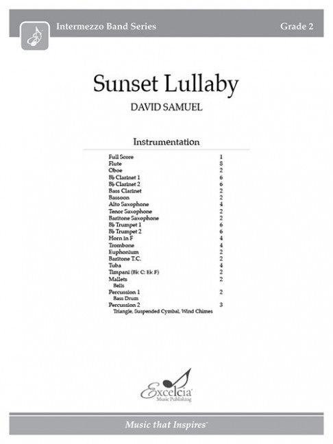 樂器: wind band出版社: Excelcia Music Publishing原文簡介: 這首為發展中樂隊創作的新抒情作品將舒展音樂家們富有表現力和敏感的演奏。日落搖籃曲》以歌曲的形式呈現,感情真摯,會打動聽眾和學生。曲目: 頁數: 80重量(g): 1EAN:812598033755
