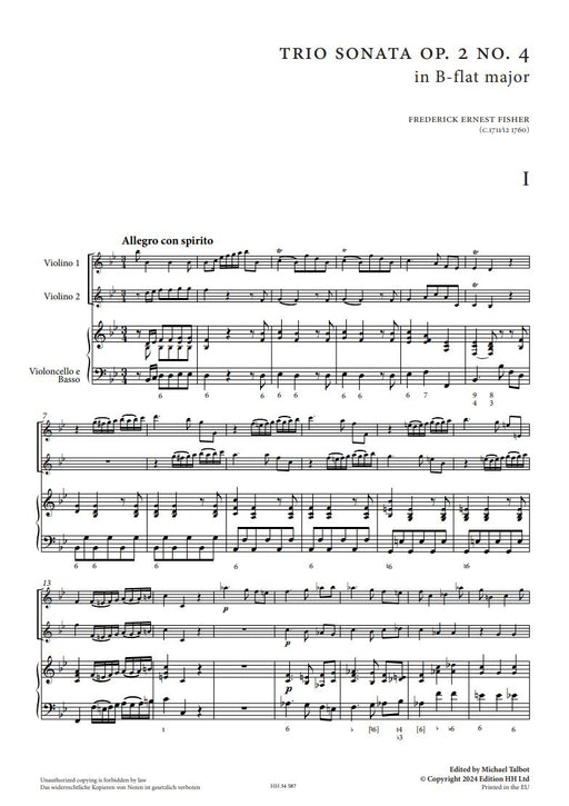 校訂者: Talbot Michael Author: 樂器: 2 violins, cello and harpsichord出版社: Edition HH Limited原文簡介: 斯坦利-薩迪(Stanley Sadie)曾在1963年表示,弗雷德里克-歐尼斯特-費舍爾(Freder...