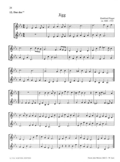 校訂者: Koschinsky Fritz Author: 樂器: 2 treble recorders出版社: Heinrichshofen's Verlag原文簡介: 曲目: Boismortier: Passepied - Fishar: Hornpipe - Abel: Menue...